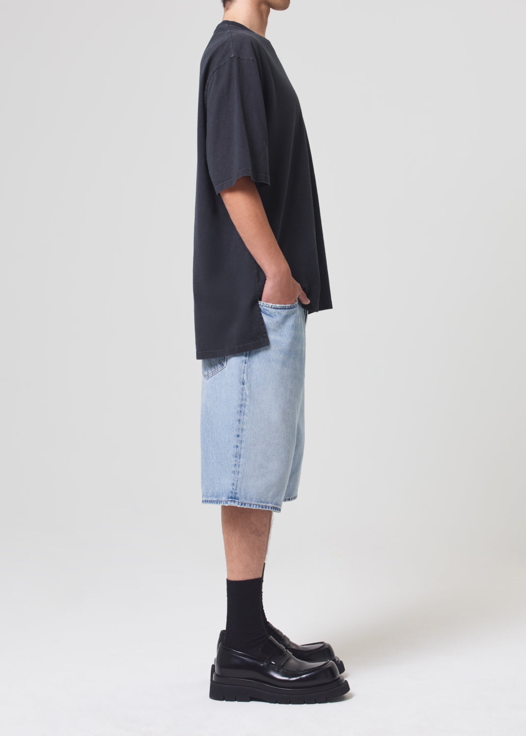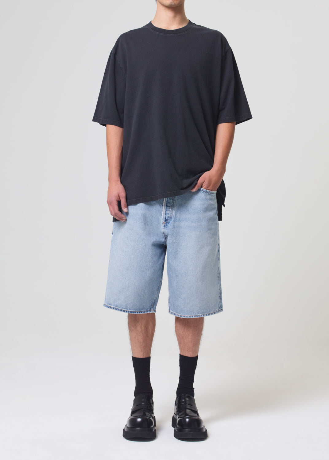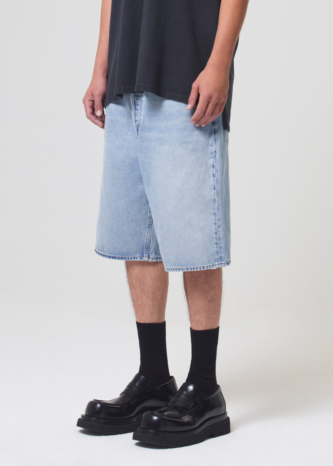 Skate short with an over the knee inseam giving a relaxed silhouette.