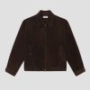 Dark brown velvet corduroy jacket with a zipper front closure.