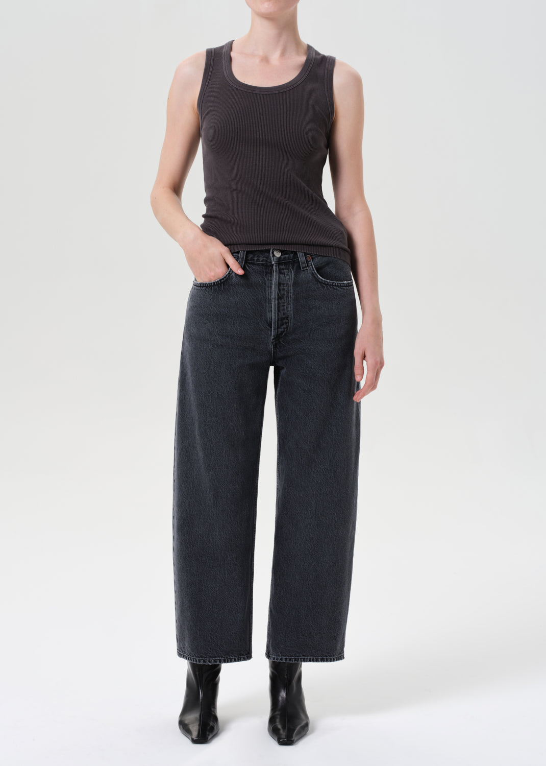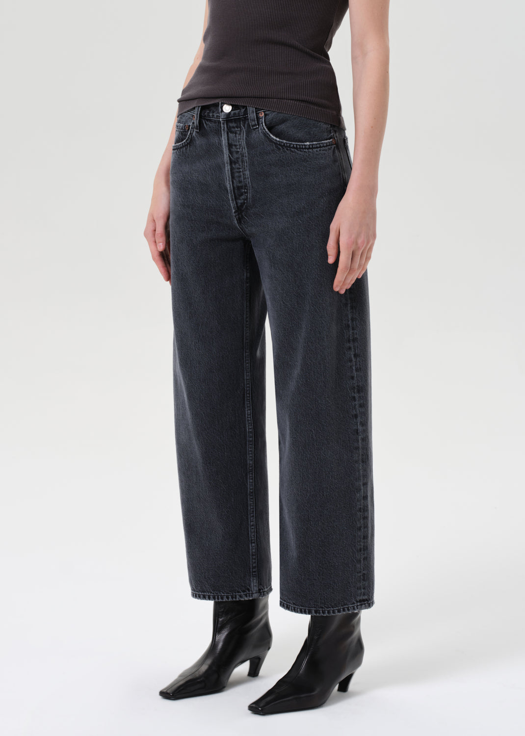 The Arc Jean features a subtle bow-leg silhouette with an easy, relaxed top block—offering a directional shape that feels effortlessly cool. Crafted from non-stretch cotton denim in a medium washed out black, this fit is designed for all-day wearability with a soft hand feel. Perfectly paired with boots, the Arc is a go-to for any day and elevated layering.