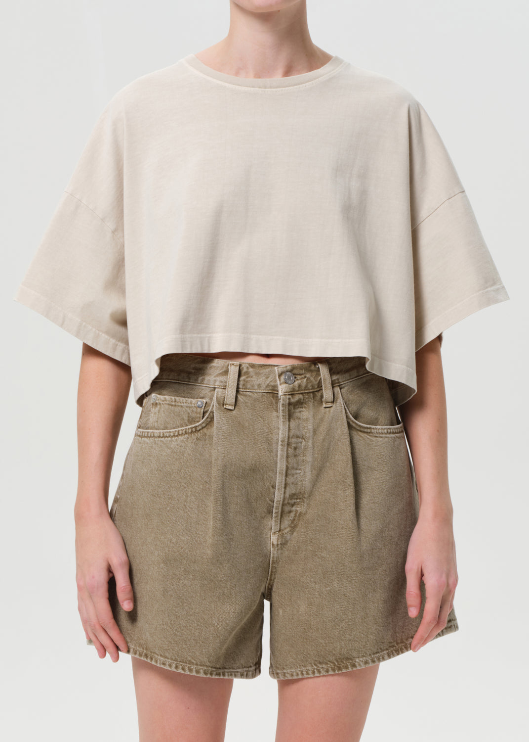 Looks Like: Light beige to brown oversized crop short sleeve tee