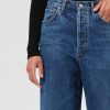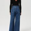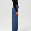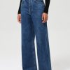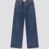 The Dame Jean features a flattering high rise and a wide leg with a clean, no-cuff finish. Crafted from rigid, non-stretch regenerative cotton denim with a soft hand, this dark vintage indigo wash is subtly marbled for a time-worn effect. Pair with a tucked-in tee or slim tank for an easy, elongated silhouette. Now available in a 29.5″ inseam.