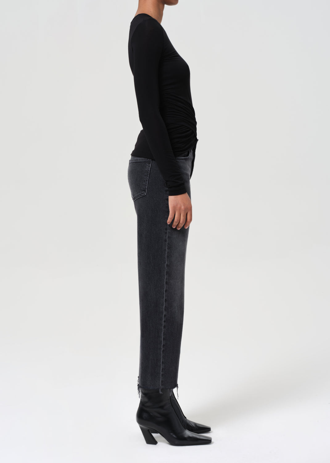 The Harper Crop is the kind of jean you’ll reach for on repeat. Cut from comfort-stretch denim in a washed-out black, this mid-rise style features a relaxed straight leg and softly worn-in finish. Cropped at the ankle for easy styling—just add a tee and sandals, and you’re set.