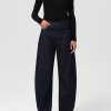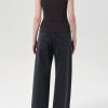 The Keira Jean is a low-rise, baggy silhouette with a relaxed full-length leg and structured hip. In Symbolic, it’s offered in a medium washed-out black with soft marbling and whiskering for a broken-in look. Pair with a sleek tank or slouchy knit to play with proportion.