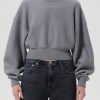 Looks Like: Medium grey cropped crewneck sweatshirt with elastic at hem