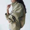 Workwear inspired with a front zipper closure, side slant pockets and button cuffs.