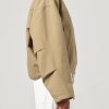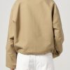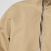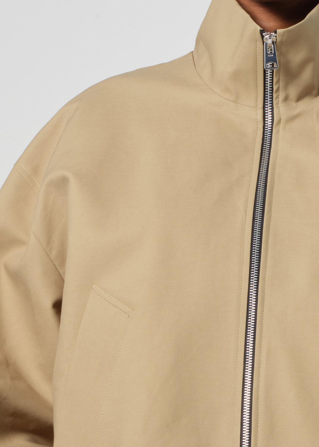 Looks Like: Medium beige zip up jacket with olive undertones and a drawcord bottom