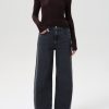 The Low Curve Jean features a relaxed, tapered leg and slouchy fit that sits low on the hips. Crafted from weightless, non-stretch denim with a soft hand, this washed-out black finish is detailed with subtle marbling and whiskering. Pair with a slim tank or boxy tee.