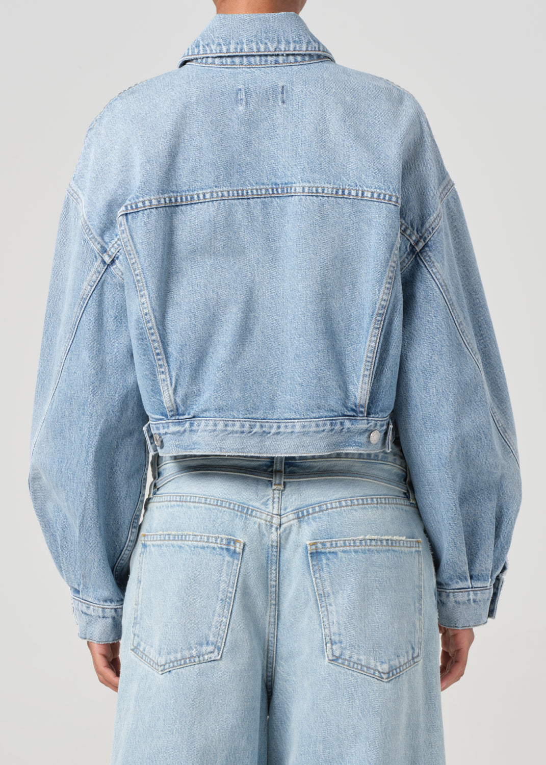 An updated take on a classic, the Palmer in light indigo from the Weightless Collection offers a relaxed, effortless vibe. Crafted from regenerative cotton, it features a subtle cropped body with low, exaggerated balloon sleeves for a modern twist. The lightweight feel of the fabric makes it perfect for layering throughout the seasons, while the light indigo wash adds a soft, lived-in appeal. A versatile piece that easily transitions from casual days to elevated looks.
