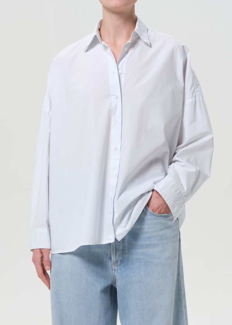 The Roux Shirt is a timeless pale blue button-up reimagined with contemporary flair. Crafted from ultra-lightweight poplin cotton, it features voluminous balloon sleeves that add a modern, feminine touch. With its clean, crisp design and true-to-size fit, this long-sleeve shirt offers effortless sophistication for any occasion. Pair with relaxed denim or tailored trousers for a versatile, elevated look.