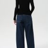 Looks Like: Dark tinted indigo denim pant with twist seam detailing