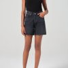 Looks Like: Washed out black denim short with clean hem and a V shaped front rise