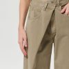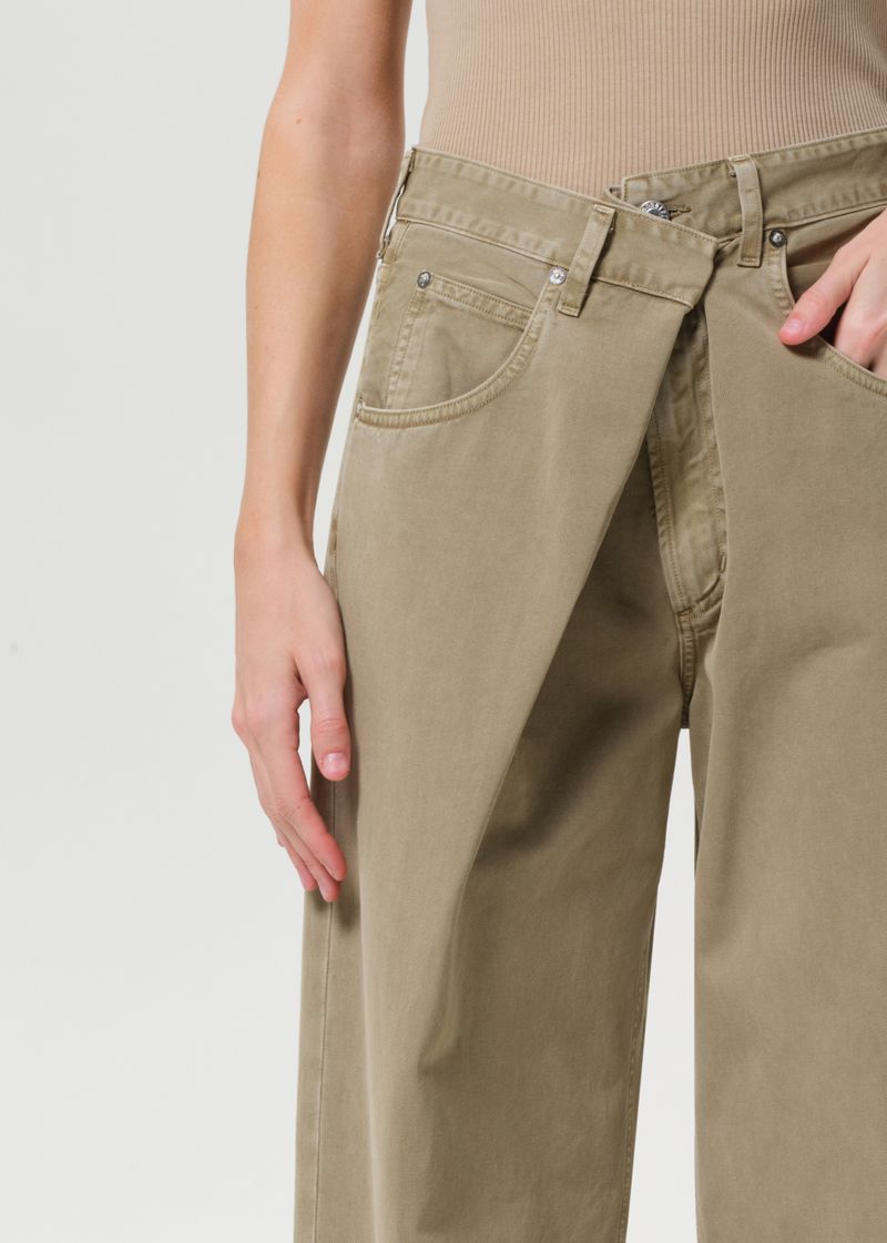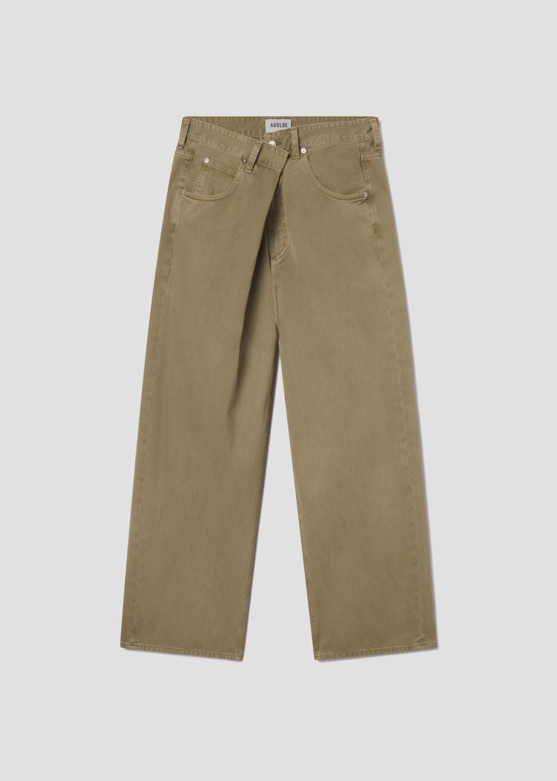 The Vana Jean Fold Jean in tan twill offers a clean, contemporary look that perfectly captures the relaxed trend of the moment. With a bold, directional silhouette, these jeans feature a distinctive “fold” closure and classic 5-pocket styling. The low-slung fit and roomy, full-length leg create an effortlessly oversized vibe, embracing the laid-back, relaxed aesthetic. For a cool summer look, pair them with a lightweight white linen shirt and simple sandals, or style with a relaxed tank top and slip-on sneakers for an easy, breezy vibe.